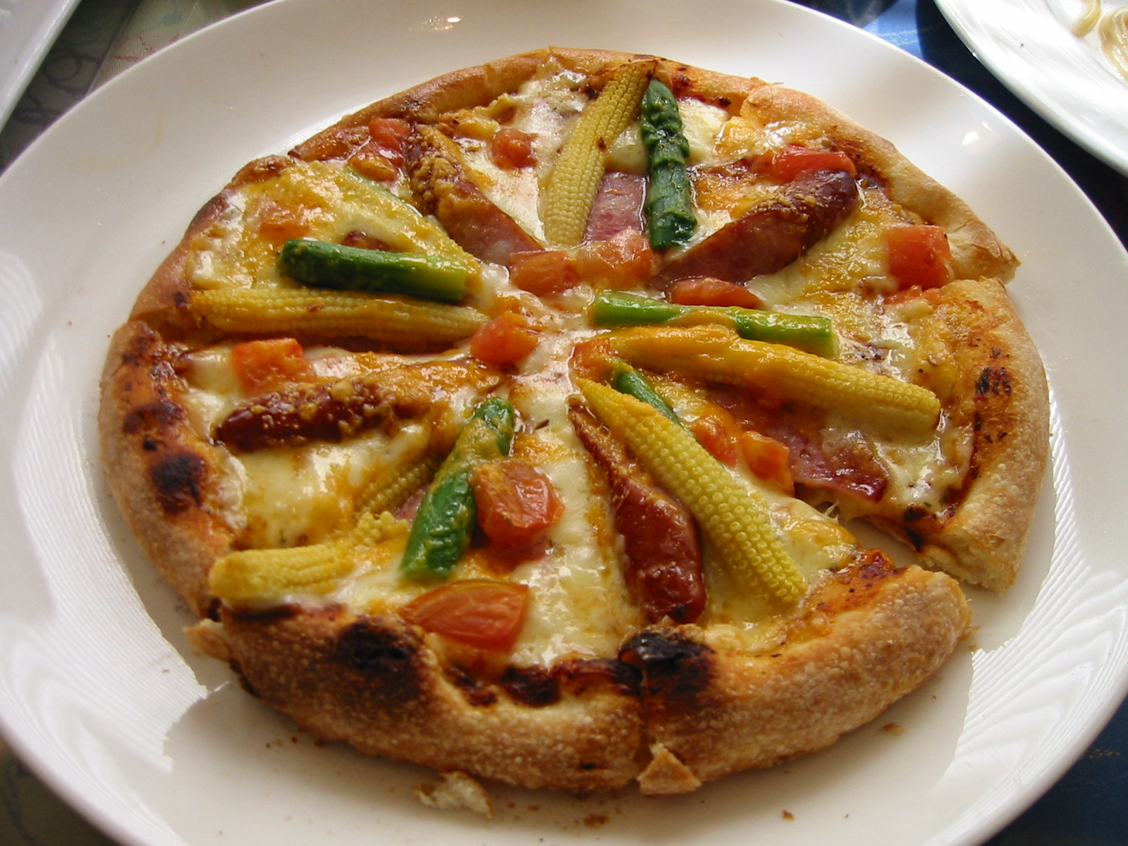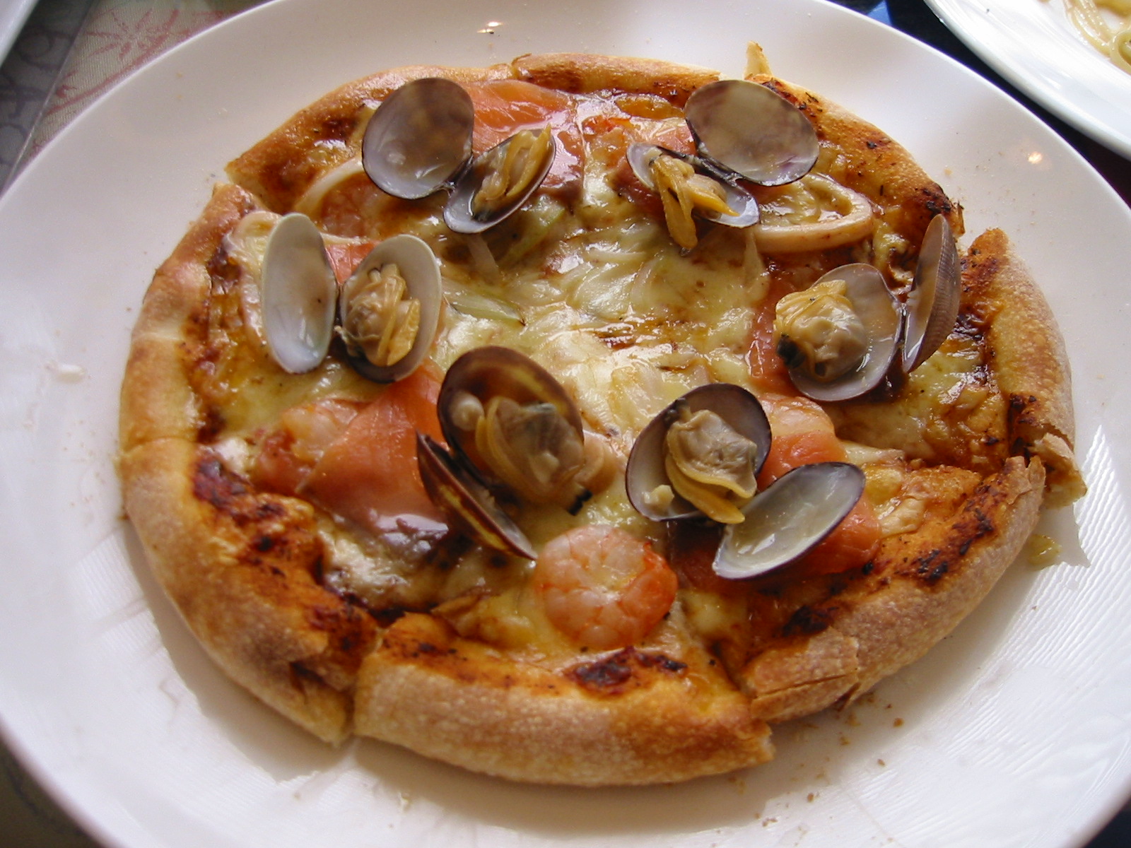 写真の左はカサーロというピザです。ヤングコーンにグリーンアスパラ、ウィンナーのトッピングです。価格は1480円です。右はメッシーナというピザです。シーフードにあさりのトッピングです。価格は1480円です。