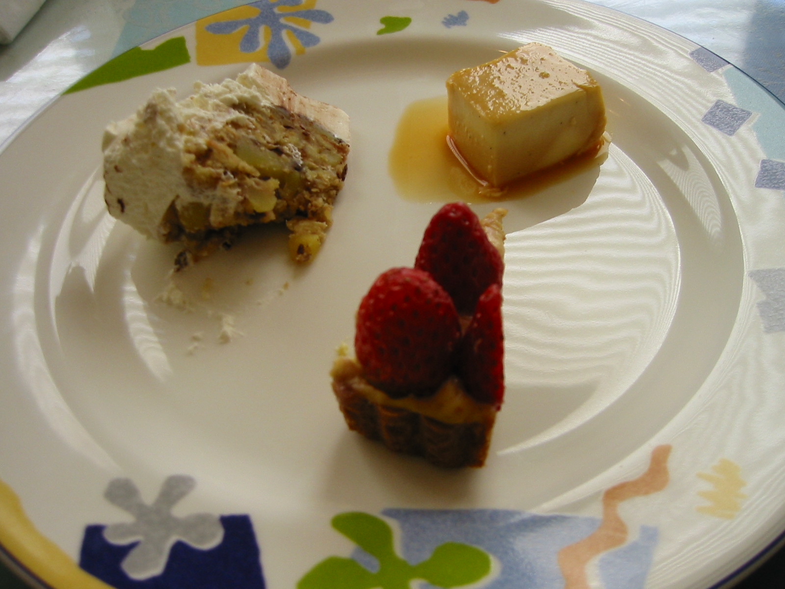 最後はドルチェとコーヒーです。ドルチェはワゴンサービスの手作りケーキから3種類を選ぶことができます。価格は320円です。