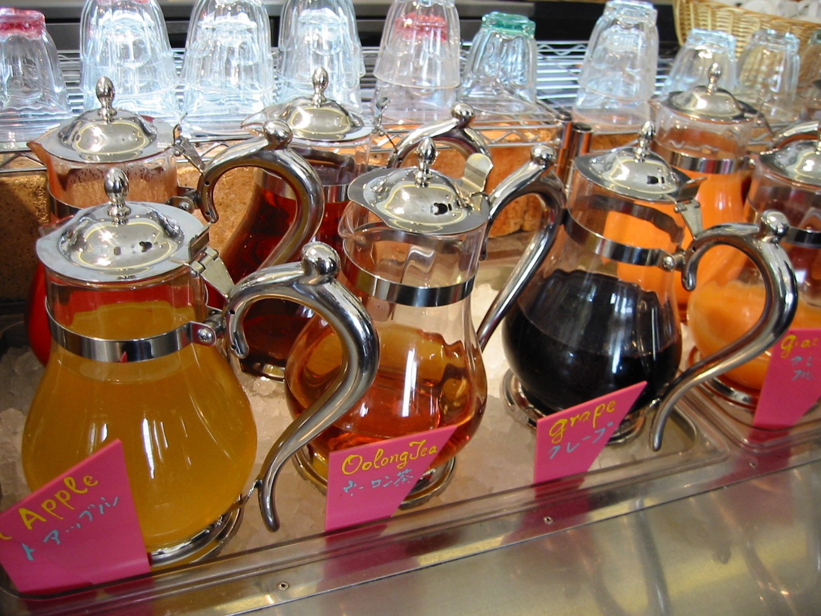 写真はドリンクバーのジュース類です。各種ジュースからアイスティーやウーロン茶まで揃っています。(^o^)v
