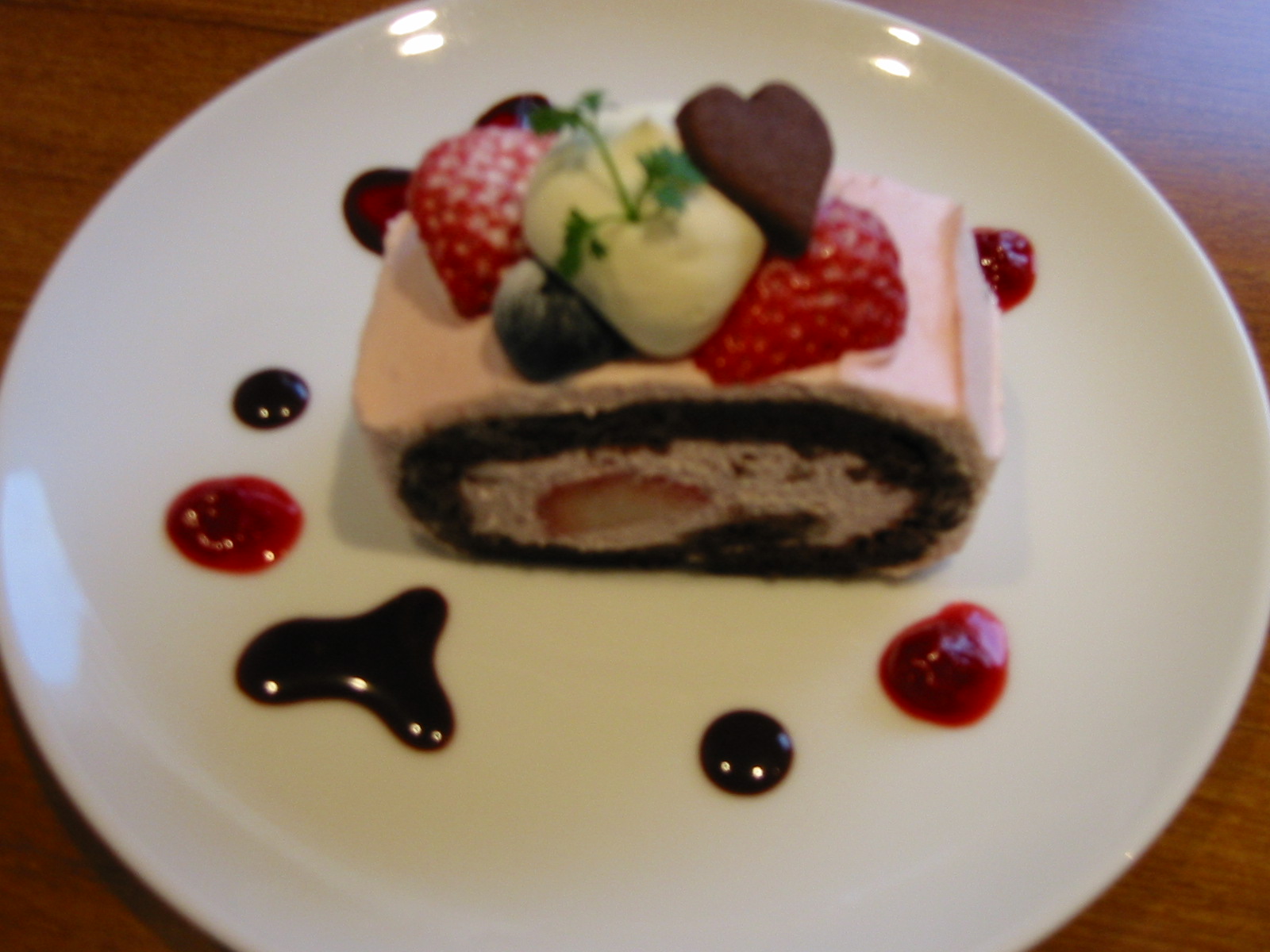 左はフルーツロールケーキです。価格は525円です。かわいい春らしいケーキです。