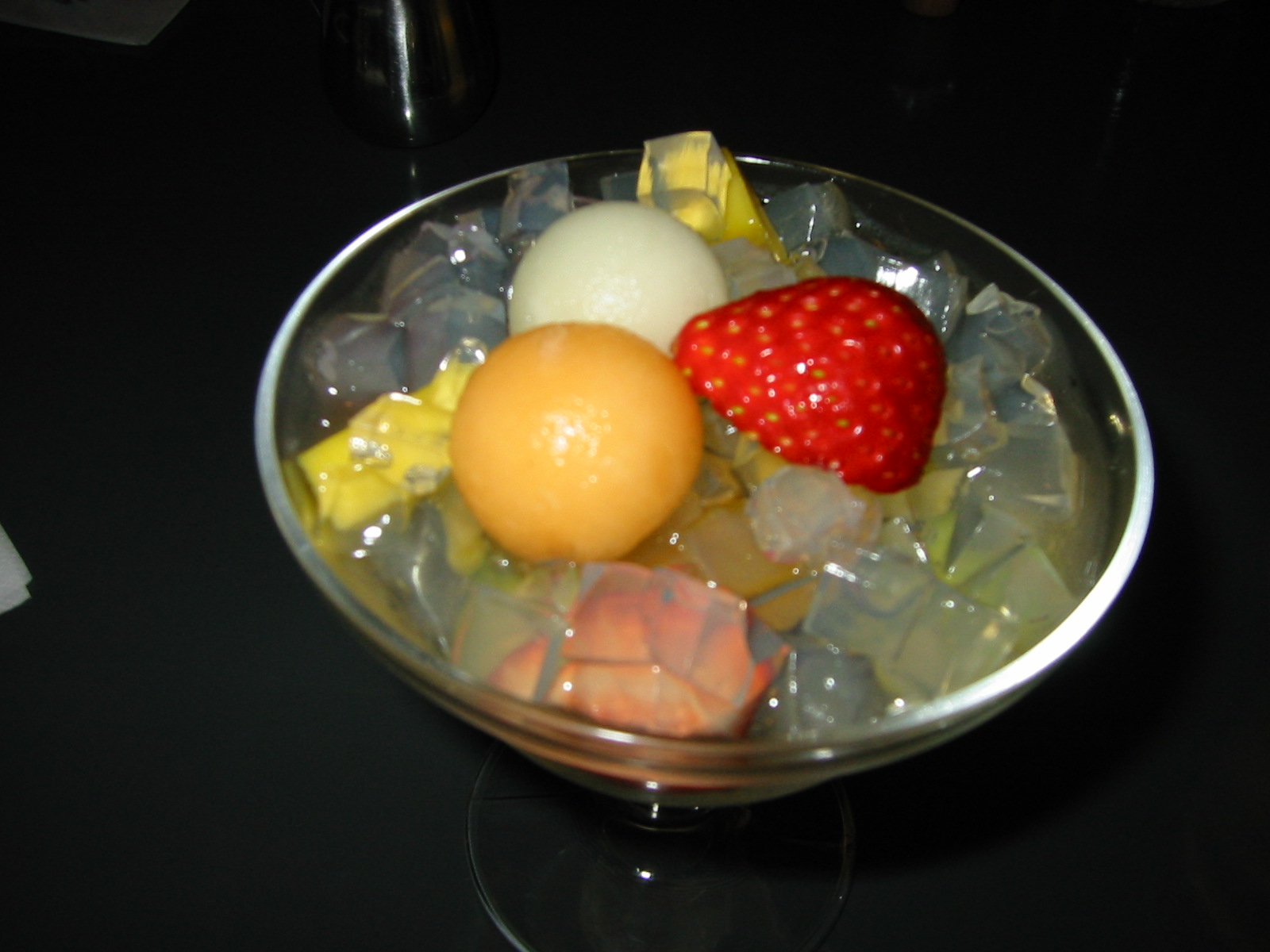 写真はみつ豆です。価格は650円です。寒天にいろいろなフルーツが入って食べ易い美味しいみつ豆です。