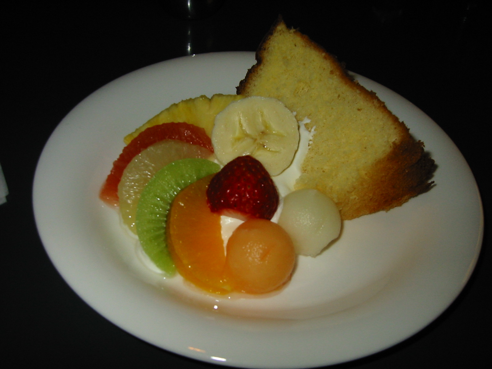 上の写真はケーキセットです。価格は780円です。シフォンケーキの周りに季節のフルーツが散りばめられていてお値打ちで大変美味しいセットです。