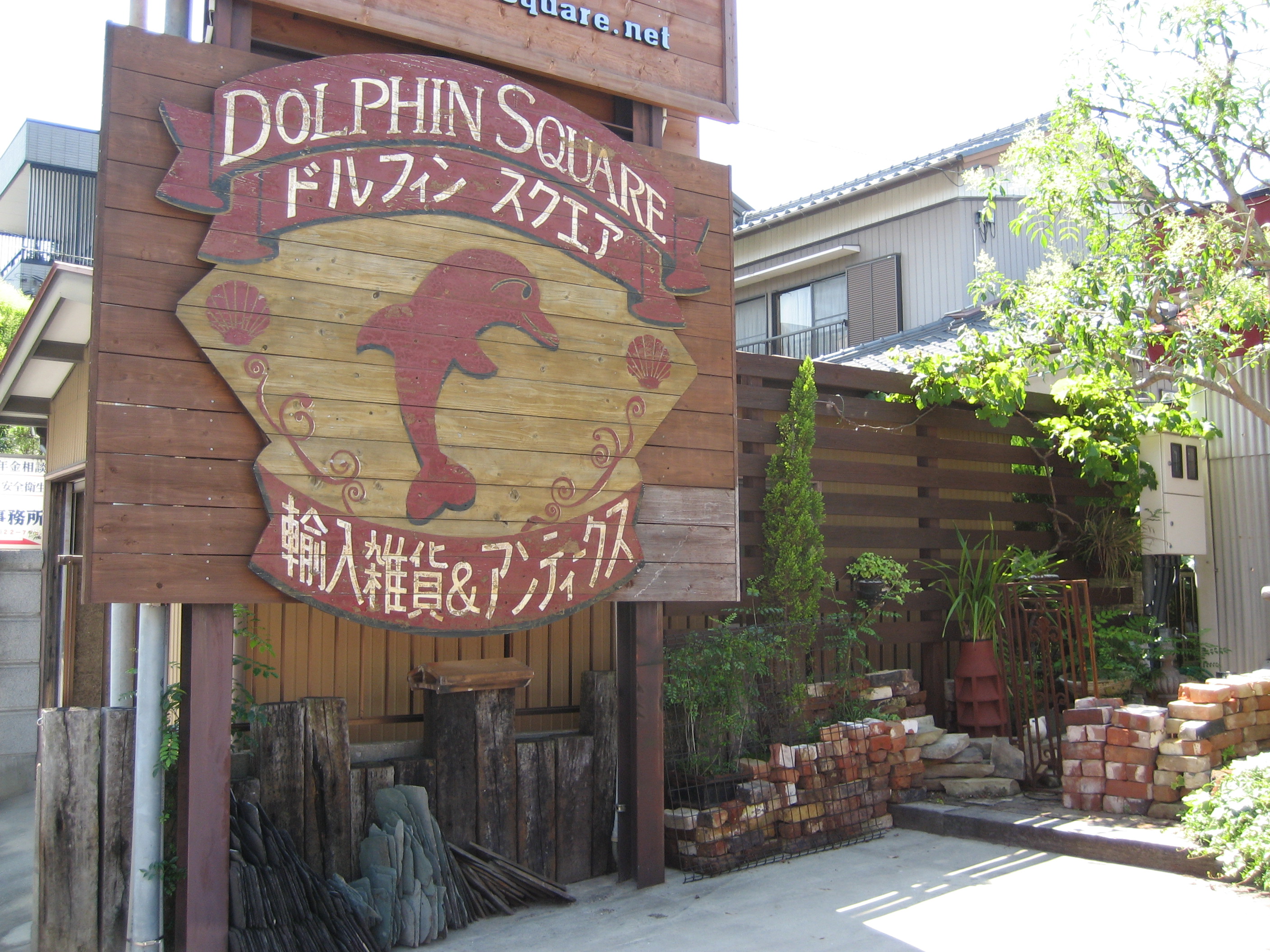 「アンティークショップ ドルフィンスクエア」さんはイルカの看板が目印のお店です。