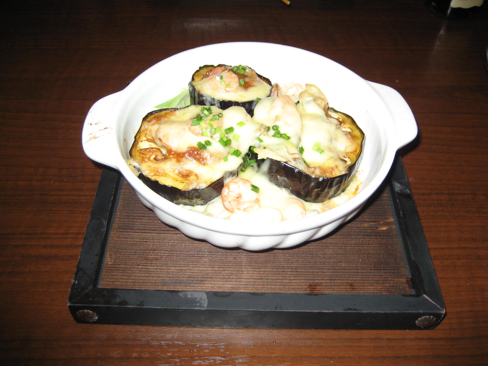 写真は海鮮味噌なすのチーズ焼きです。焼きなすと味噌とチーズの合体が美味しい一品です。価格は480円です。