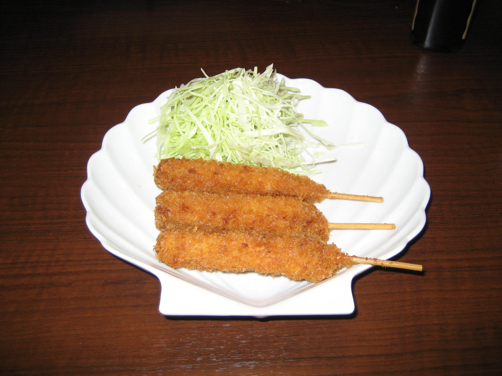 左はネギマで1本160円です。右は串カツで一皿350円です。ビールのつまみに最高です。