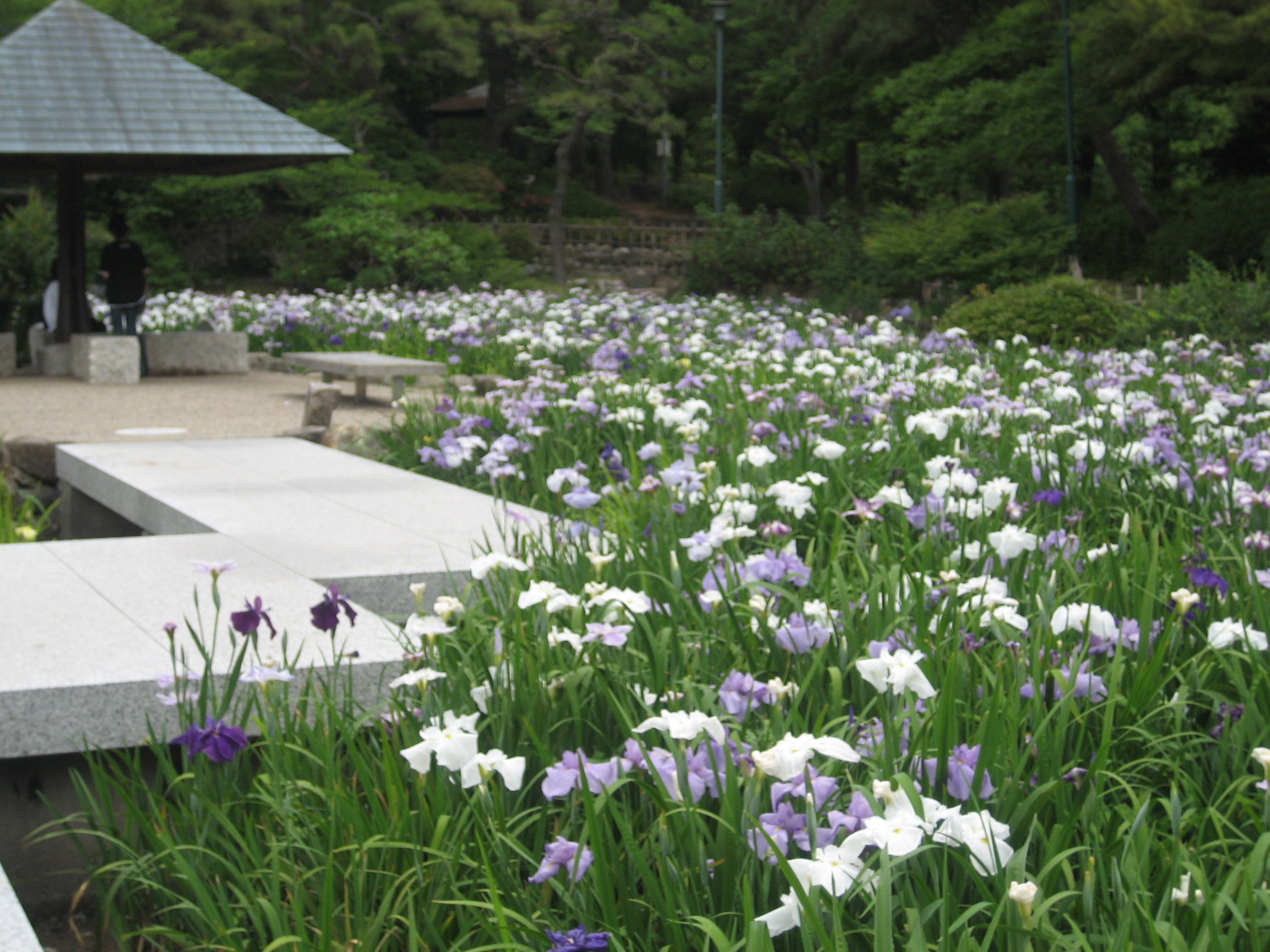 今は、アジサイと花しょうぶが楽しめる「菖蒲池」がきれいです。ちょっと時間を取って、花しょうぶの観賞も良いものです。