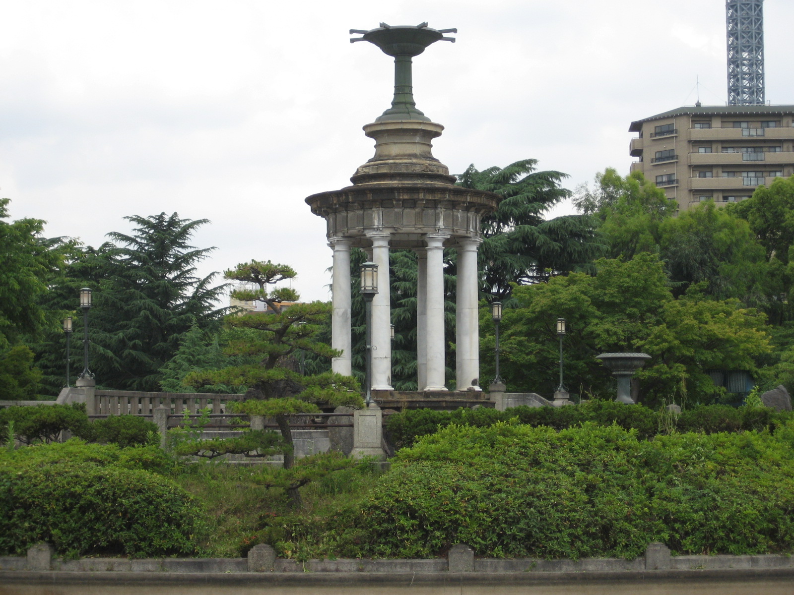 「鶴舞(つるま)公園」は桜山から車で10分程、地下鉄鶴舞線の4番出口を出ると正面に出ます。鶴舞公園のシンボル、「噴水塔」へと続いています。右の写真は「噴水塔」です。ルネサンス風の建造物で昭和52年に復元されました。