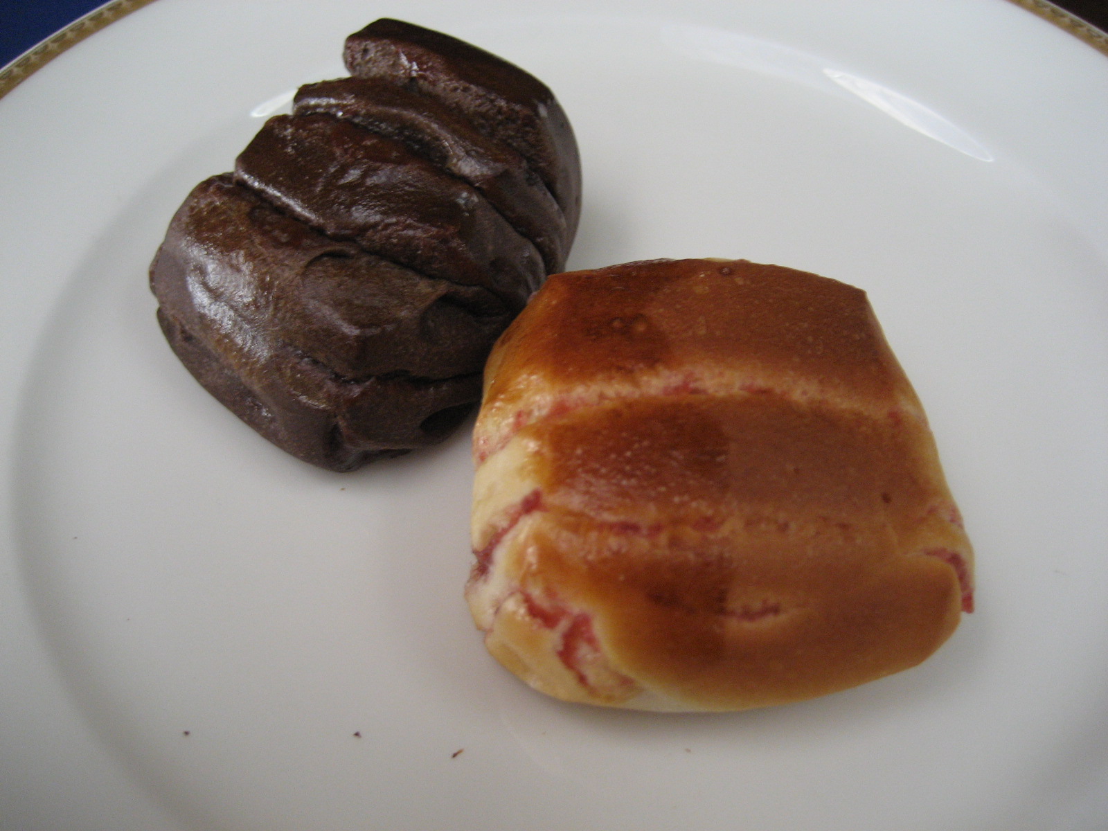 セットの「前菜とスープ」の写真と「パン」です。パンは焼き上がると席へ運んで来て貰えるので、ついつい食べ過ぎますのでご用心。