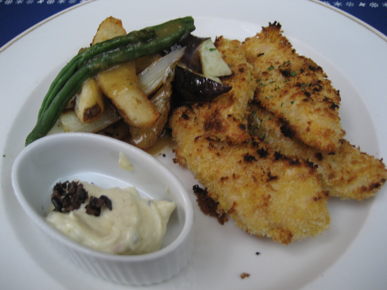 今日は、スタッフとランチを頂きました。ランチは、チキン・フィッシュ・ハンバーグの3種類からの選択です。パン付きが+105円、セットは+525円です。