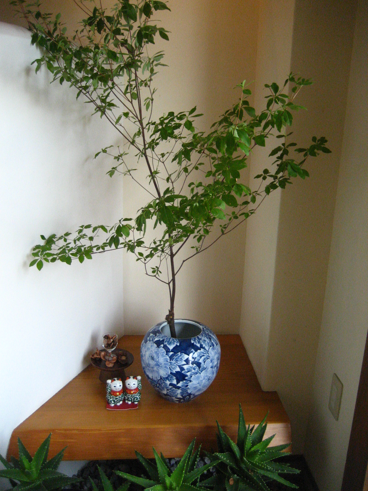 入口を開けて入ると緑のインテリアが迎えてくれます。ちょっとほっとする空間です。