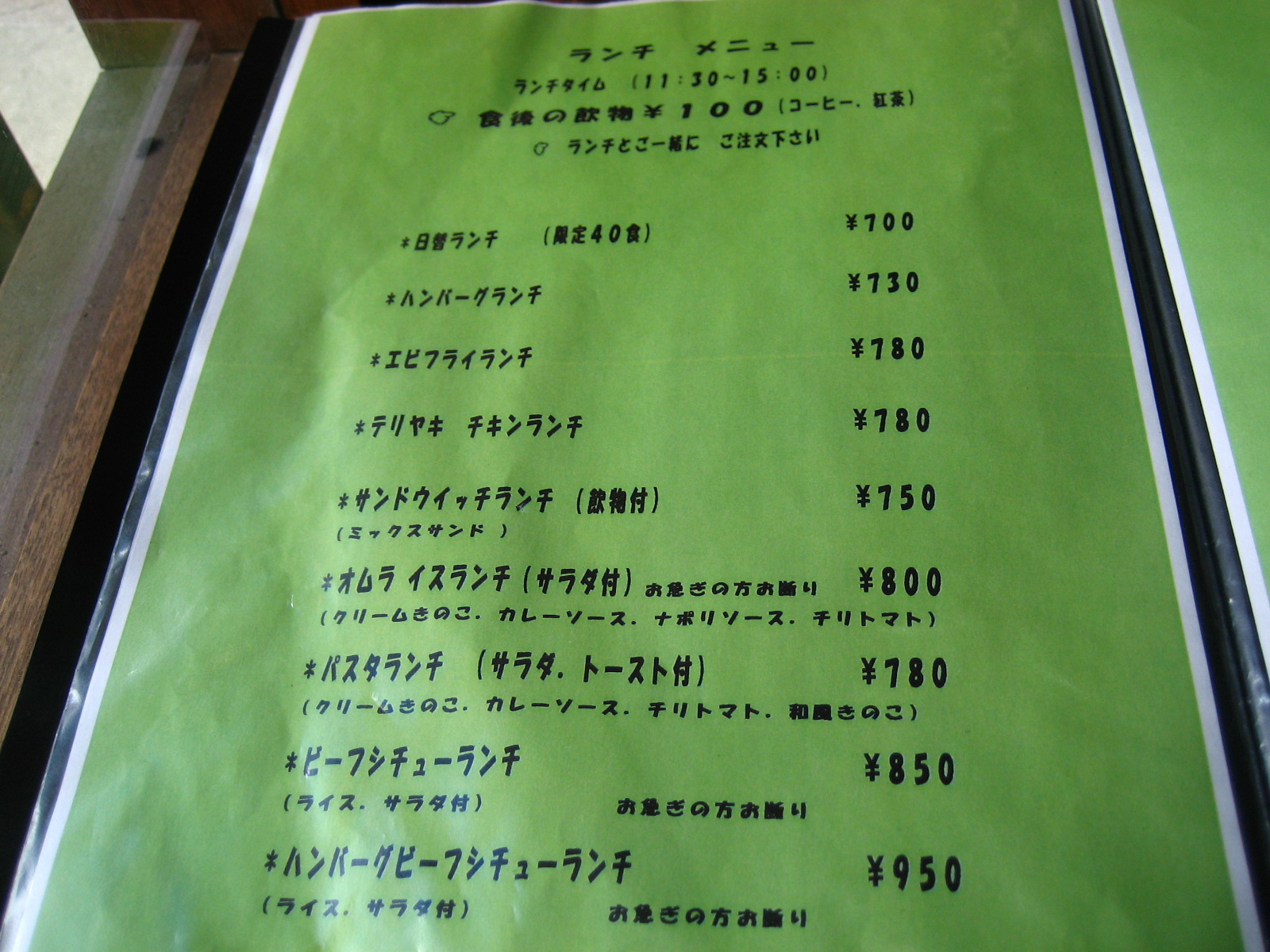 ランチメニューです。日替わり以外にもいろいろなメニューがあって使い易いお店です。(クリックすると大きくなります)