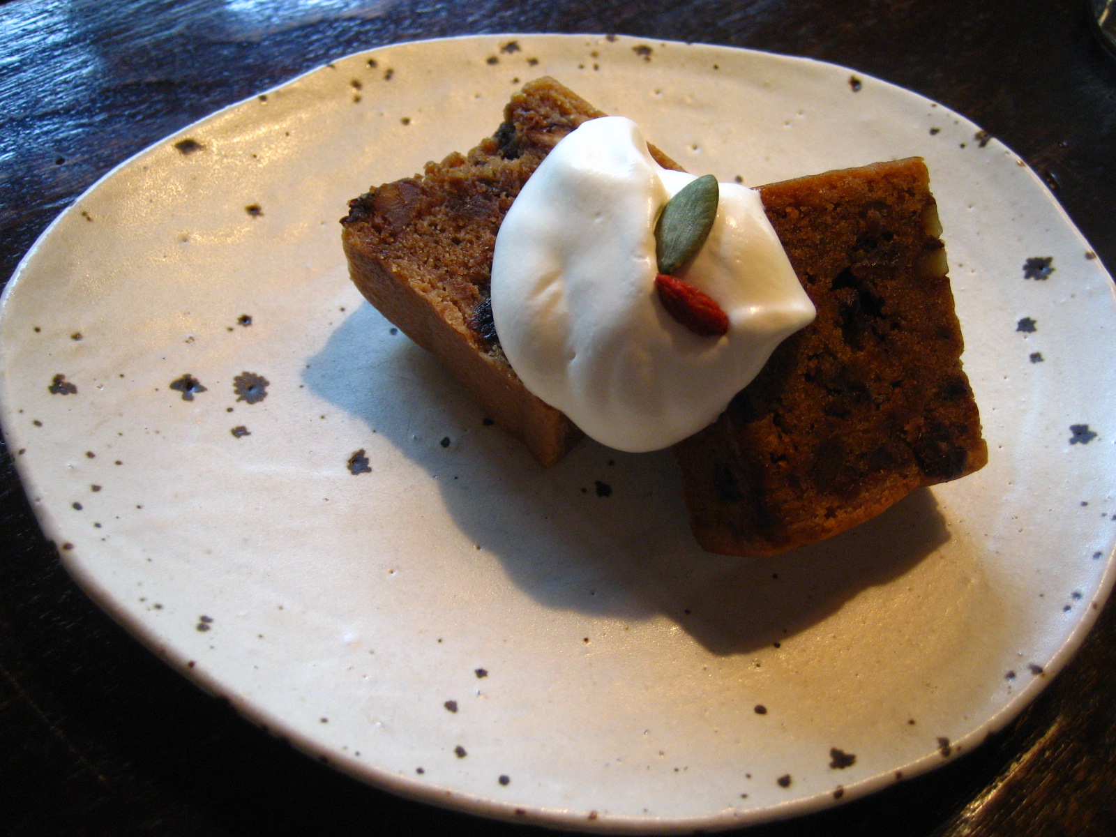 暖炉の火を見ながら、「コーヒー」と「木の実のケーキ」を頂きました。価格はセットで700円です。土の香りのコーヒーカップでゆっくり飲むコーヒーは最高です。