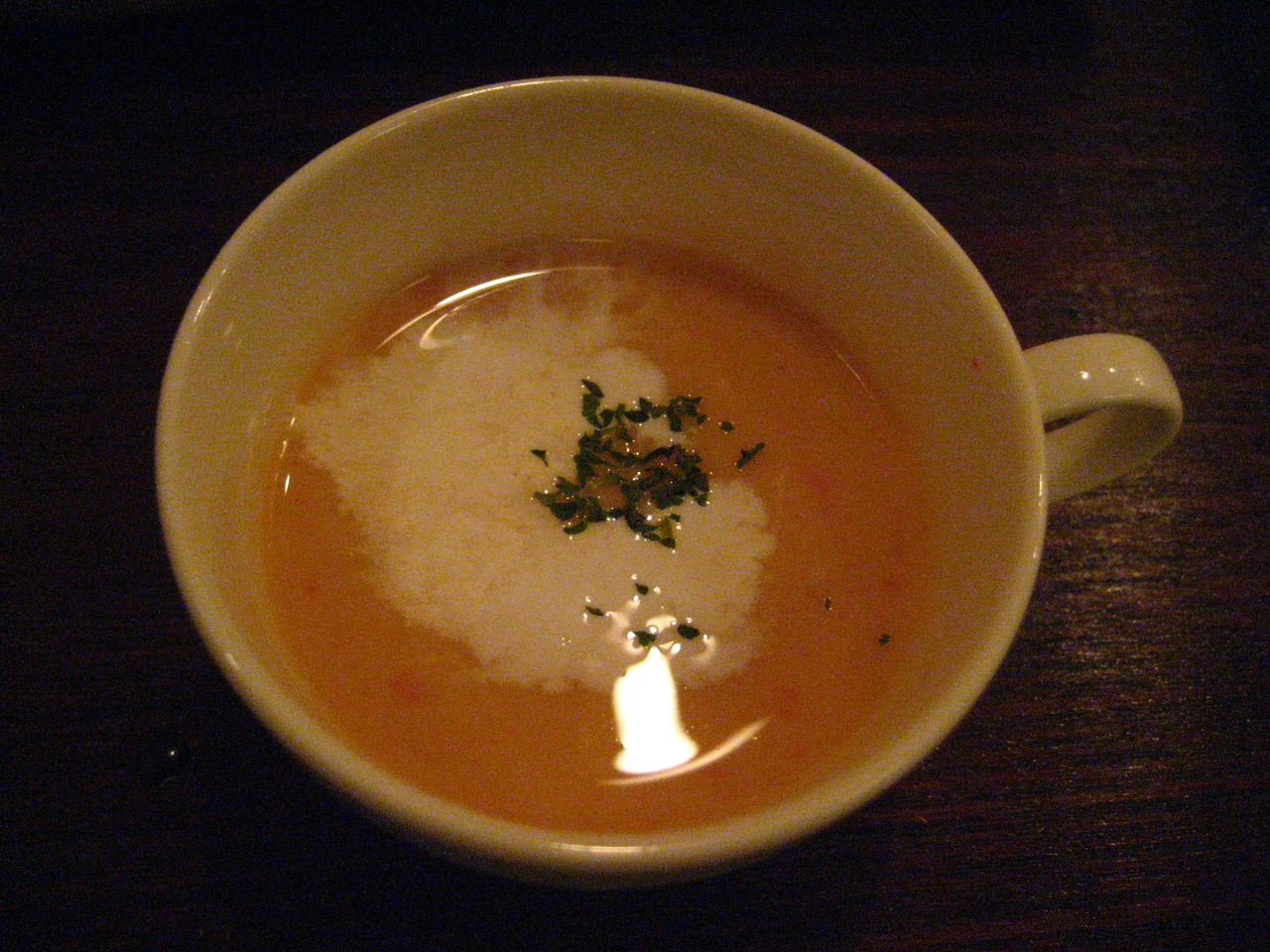 途中で「冷製スープ」が出ます。飲み易いスープです。