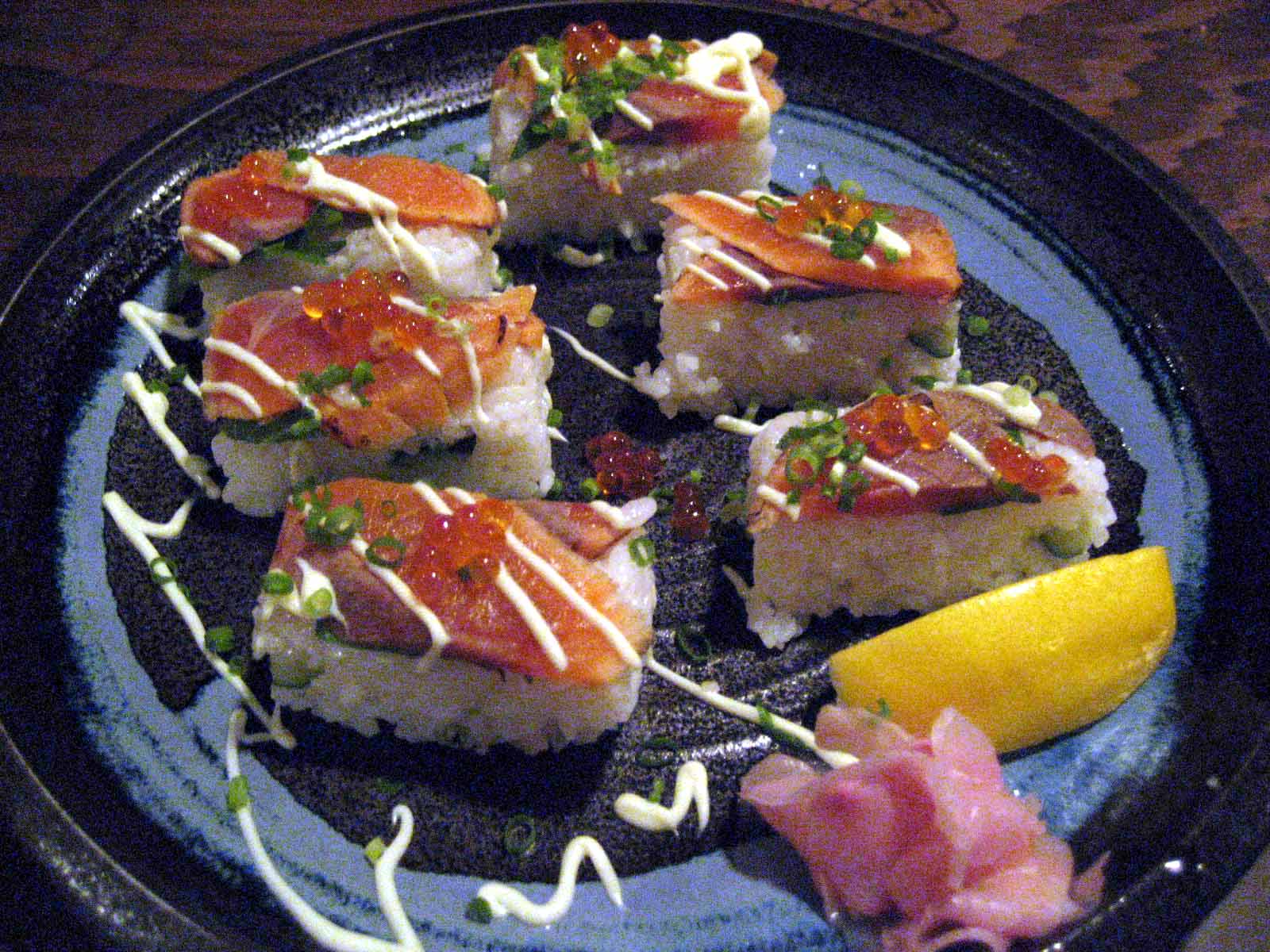他にも、殻付きウニグラタン、ナスの揚げ出し等も頂きましたが、最後の締めの、「トロサーモンの押し寿司」価格は724円、「ミニねぎ塩ラーメン」価格は409円もさっぱりと食べ易いです。