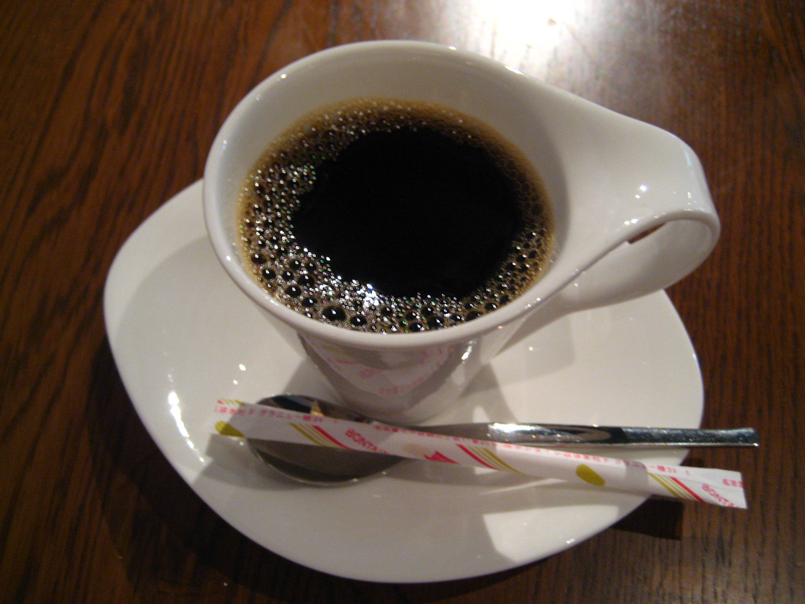左はランチセットの「デザート」です。ババロアにパッションフルーツのソースがかけてあります。「コーヒー」は、単品の注文で価格は380円です。