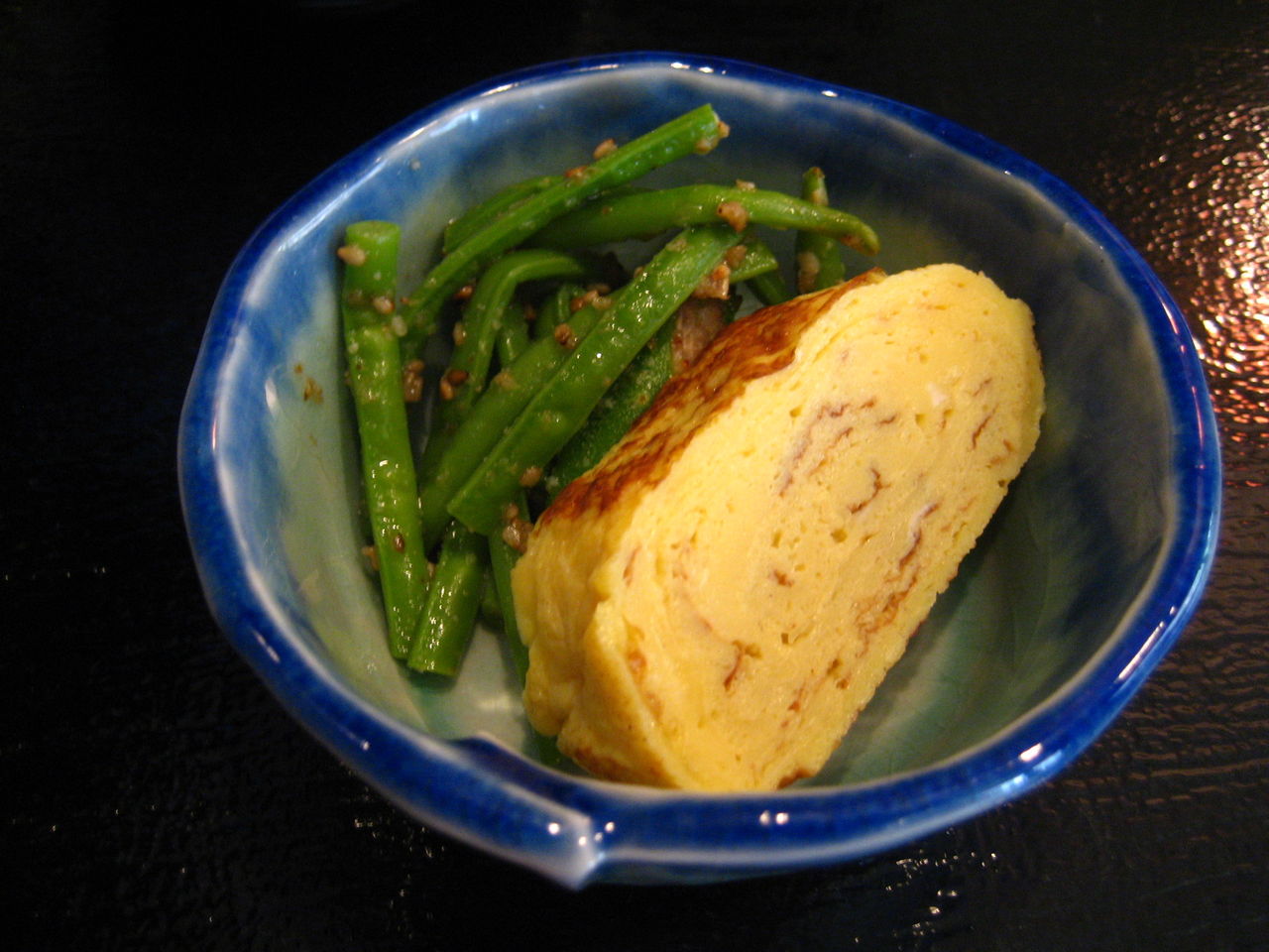 「冷や奴」と「玉子焼きと五月豆の胡麻和え」です。