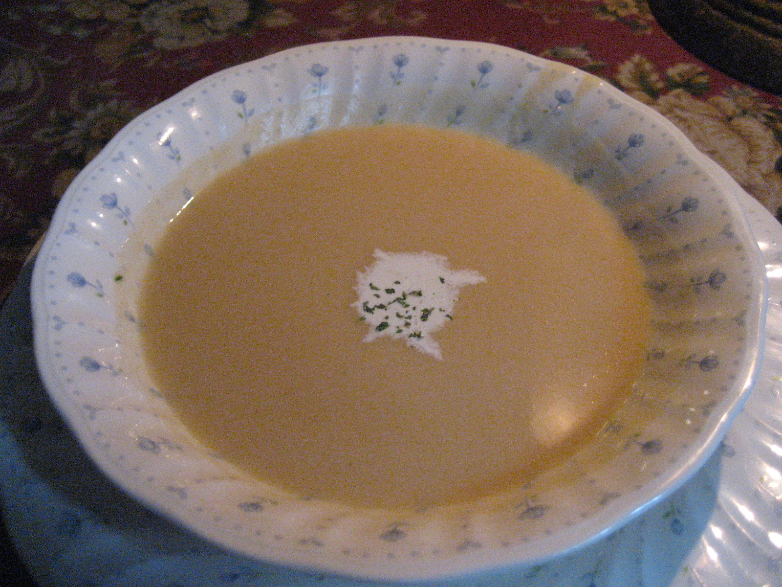 左は、「ハーブとチーズのソースの前菜」です。右は「きのこのスープ」です。