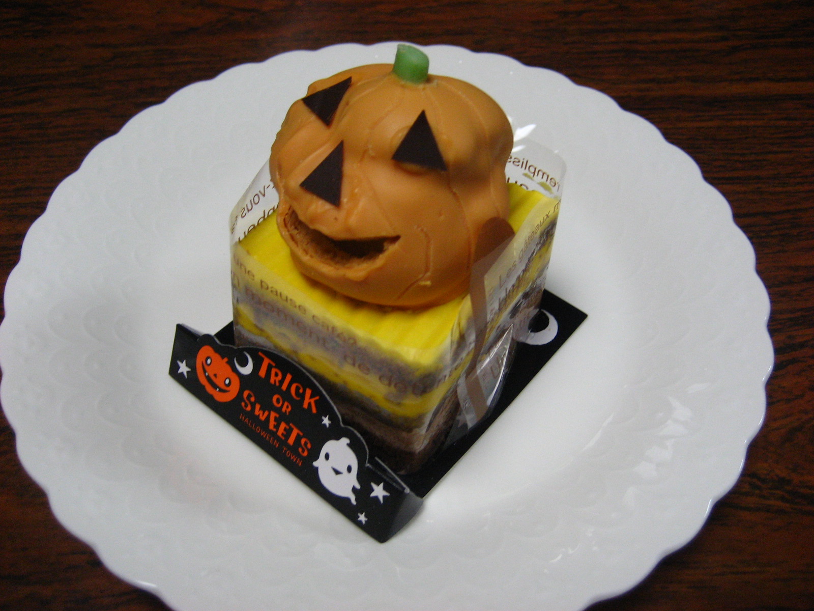 上の写真の左が、季節限定、ハローウィン用のケーキ「ジャックオーランタン」というケーキです。価格は350円です。右は、一つで3つの味が楽しめる「ラミトロワ」というケーキです。価格は、300円です。