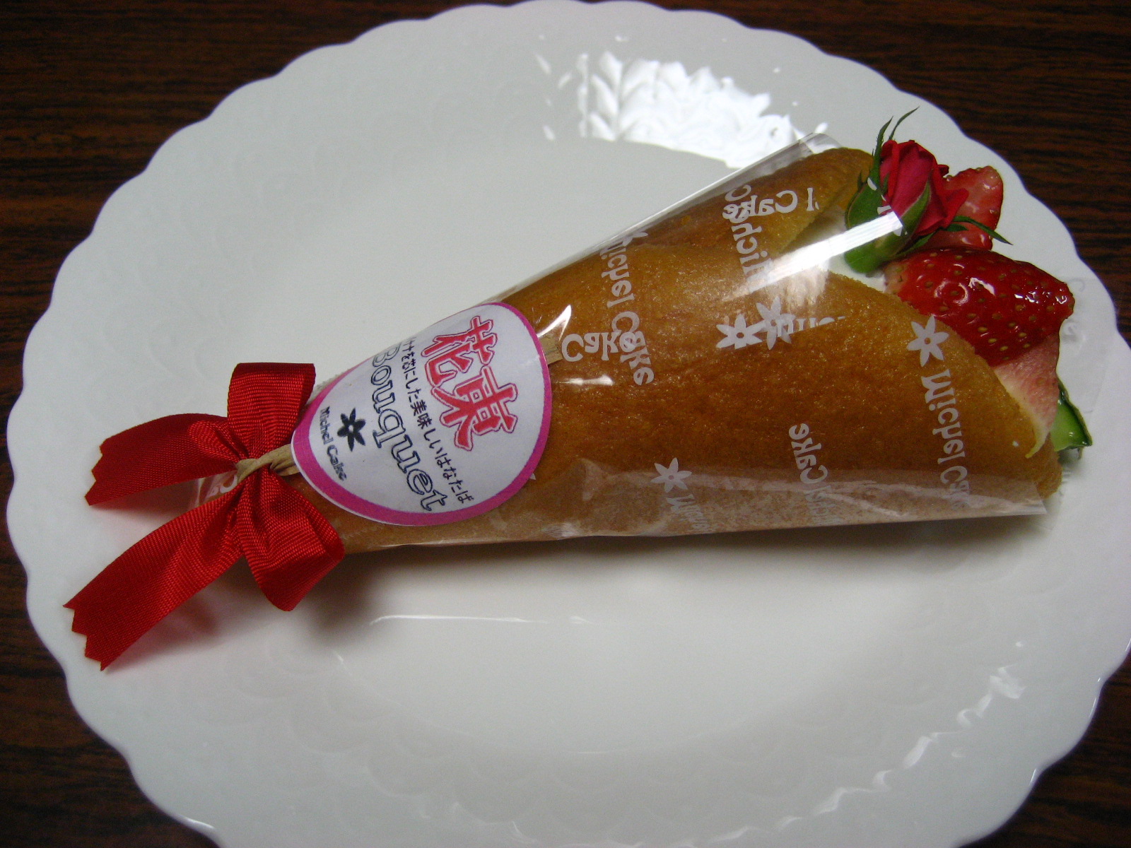 上の写真は、「花束」と「ワニちゃん」というケーキです。ユーモラスな創作ケーキです。価格は花束が350円、ワニちゃんが250円とお値打ちなケーキです。花束はお祝い事にも使えそうなケーキです。