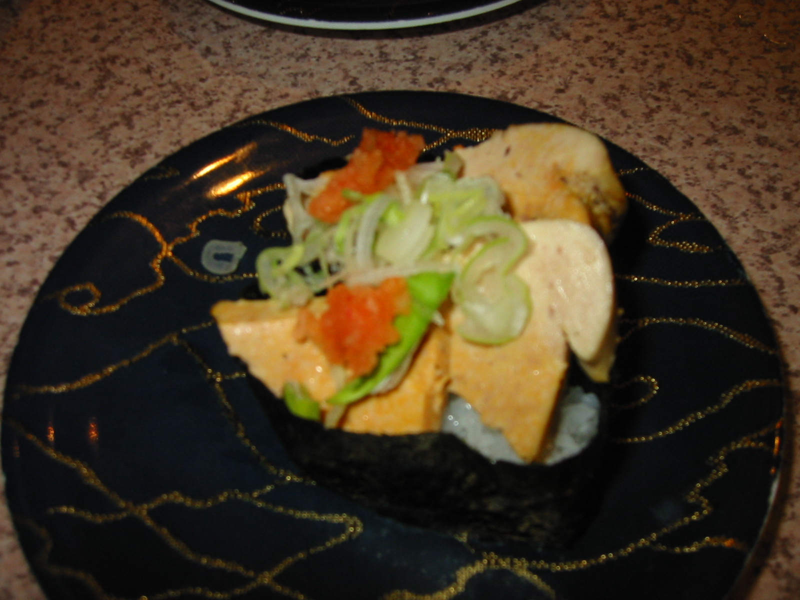写真はアン肝の軍艦巻きです。アン肝の味が濃厚で美味しいです。(*^-^*)