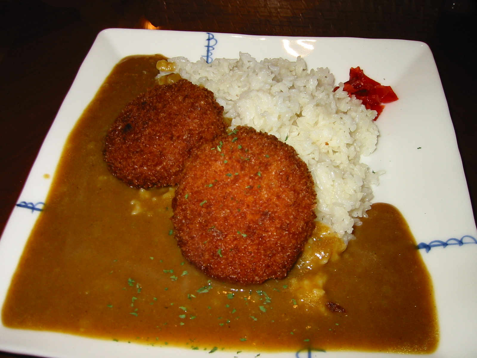 今日のメインはカレーでした。左はカニコロッケのカレーです。右はロースカツのカレーです。選択できます。どちらも揚げたてのコロッケとカツが熱くてサクサクしてとても美味しかったです。(*^-^*)