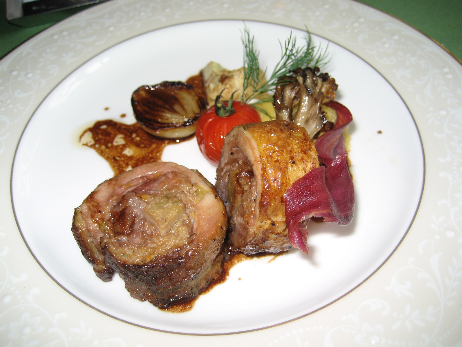 写真はありませんが、「竹の子のスープ」が出て、メイン料理は、魚と肉の選択です。肉料理の「ほろほろ鳥と鴨のミンチ」を頂きました。