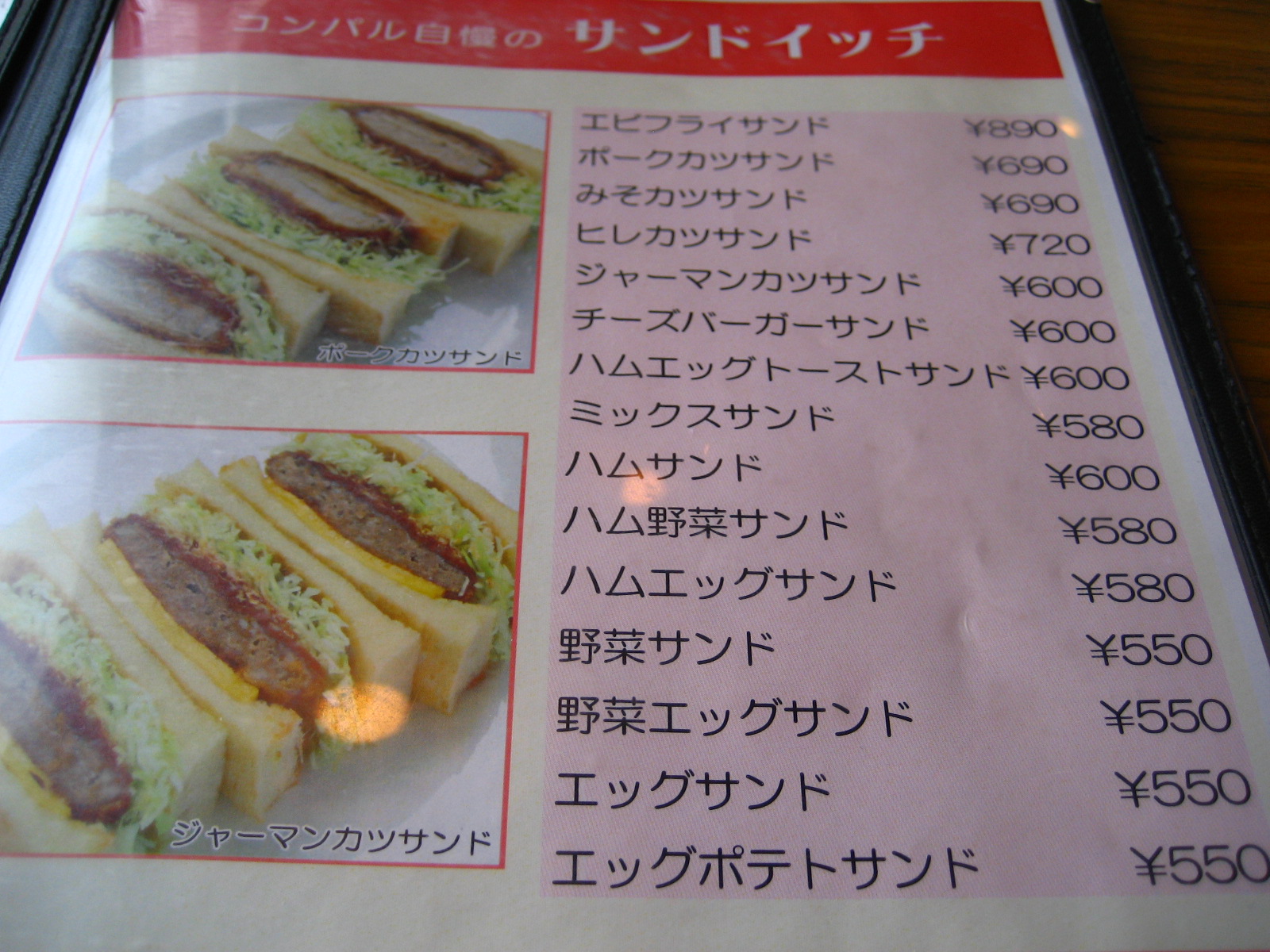 今回は、サンドイッチの写真を撮り忘れましたので、メニューを載せておきます。(クリックすると大きくなります)「コンパル」さん自慢のサンドイッチを食べに出かけてみて下さい。
